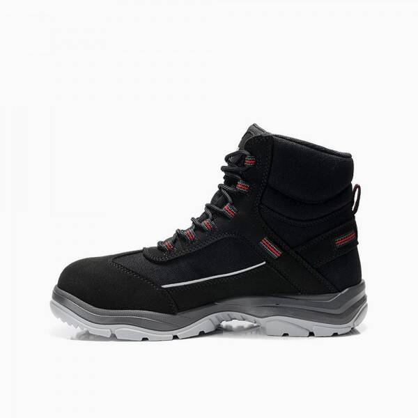 Het moderne design, de meerkleurige loopzool en de reflecterende accenten maken van de MATTHEW TPU Mid ESD S3 Type 2 een ware eyecatcher. De speciale SRC-gecertificeerde loopzool vergemakkelijkt dankzij de draaipunten de draaiende beweging bij werkzaamheden op een vierkante meter. Hierdoor wordt de druk op de knieën aanzienlijk verminderd en worden klachten tegengegaan. Daarnaast is de zool dankzij de speciale honingraatstructuur extra slipvast op harde, gladde vloeren. Ideaal voor werkzaamheden op gegoten betonvloeren. Het bovenmateriaal van de schoen bestaat uit gehydrofobeerd microvezel en gehydrofobeerd textiel wat hem erg licht van gewicht en waterafstotend maakt. De ademende binnenvoering van textiel zorgt voor een aangenaam klimaat in de schoen en doordat de schoen compleet ledervrij is, is hij ook geschikt voor mensen met een lederallergie. Om ervoor te zorgen dat de MATTHEW altijd perfect past is deze verkrijgbaar in drie verschillende pasvormen: voor de brede voet, de smalle voet en de normale voet. Als laatste maar zeker niet onbelangrijkste punt, is deze schoen voorzien van een zeer complete veiligheidsuitrusting. De stalen neus beschermt tegen vallende voorwerpen en de metaalvrije tussenzool tegen het intreden in scherpkantige materialen. De MATTHEW TPU Mid ESD S3 Type 1 is verkrijgbaar in de maten 40 t/m 48.