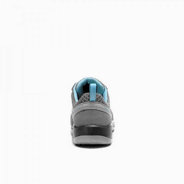 De ESD-gecertificeerde veiligheidsschoen voor dames MILA Low ESD S1 in grijs-turquoise valt in de smaak.