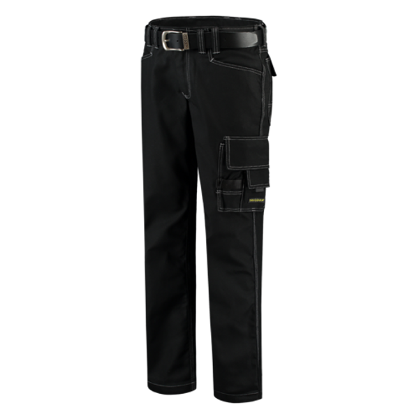Deze canvas werkbroek heeft drievoudig gestikte naden, een hamerlus, een dijbeenzak welke aflsuitbaar is, en een duimstokzak. De dubbele zoom zorgt voor ongeveer 6 cm lengte.